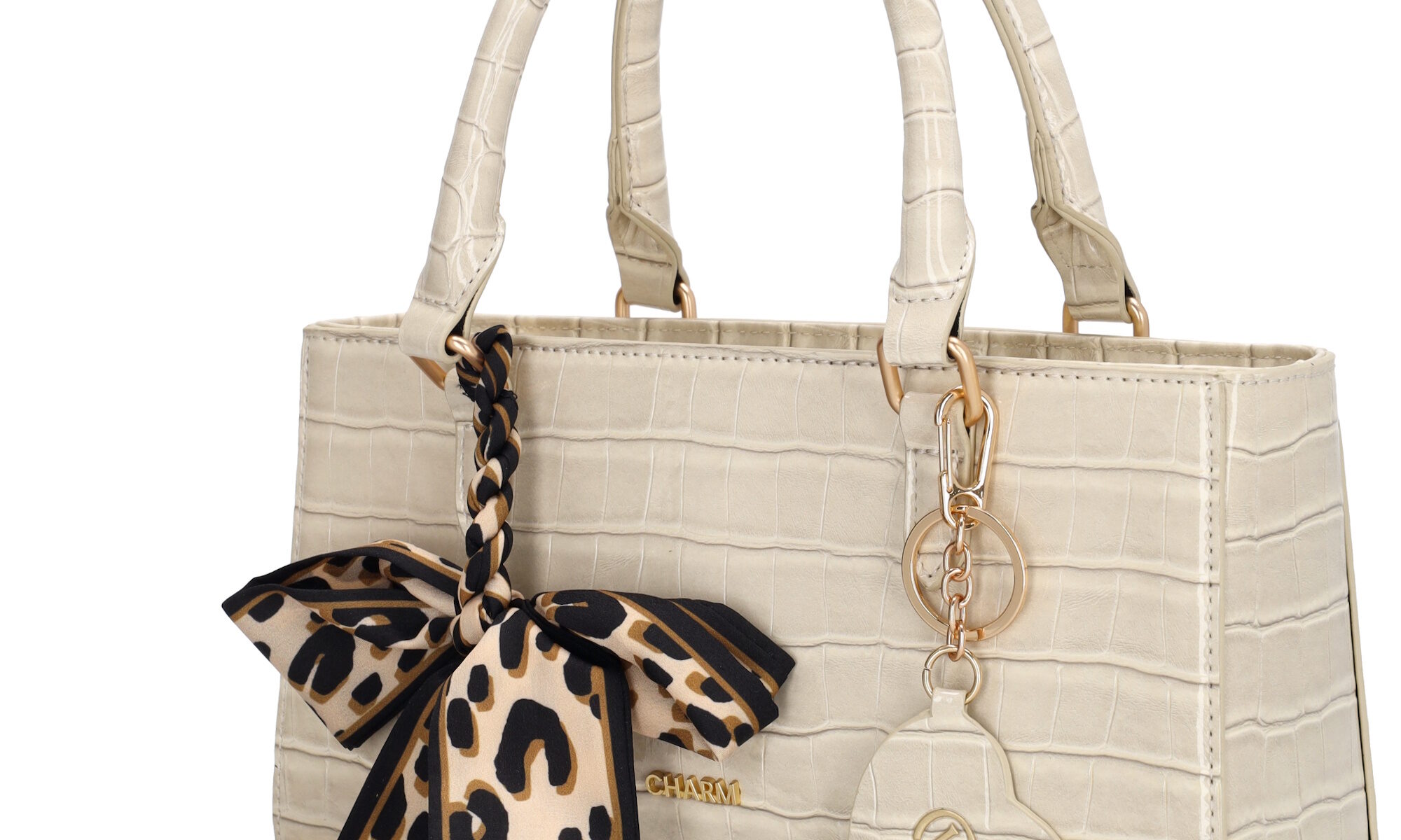 - De Charm London Knightsbridge Handtas is een elegante tas met een stijlvolle croco laklook. Dankzij de dubbele handvatten draag je deze tas comfortabel in de hand of over de arm – perfect voor een dagje uit of een chique gelegenheid.